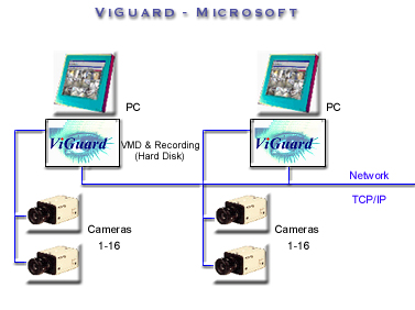 ViGuard units are connected to the same local network. Up to 16 cameras can be